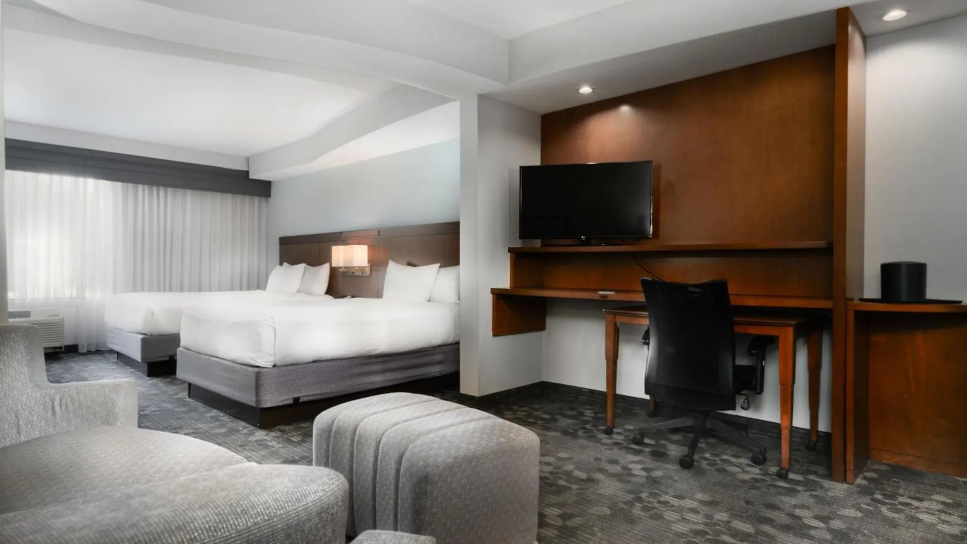 Overlooking the garden, some rooms at the Courtyard New Braunfels feature a stone fireplace furnished with a sofa and a writing table. Guests will appreciate individual climate control and an ironing set, and relax with a flat-screen TV with satellite channels. Offering a separate toilet, the bathrooms are fitted with a hair dryer and towels. Here you'll also find views of the Guadalupe River. The villa has a large living area and a kitchen with a microwave oven, a refrigerator, and a seating.